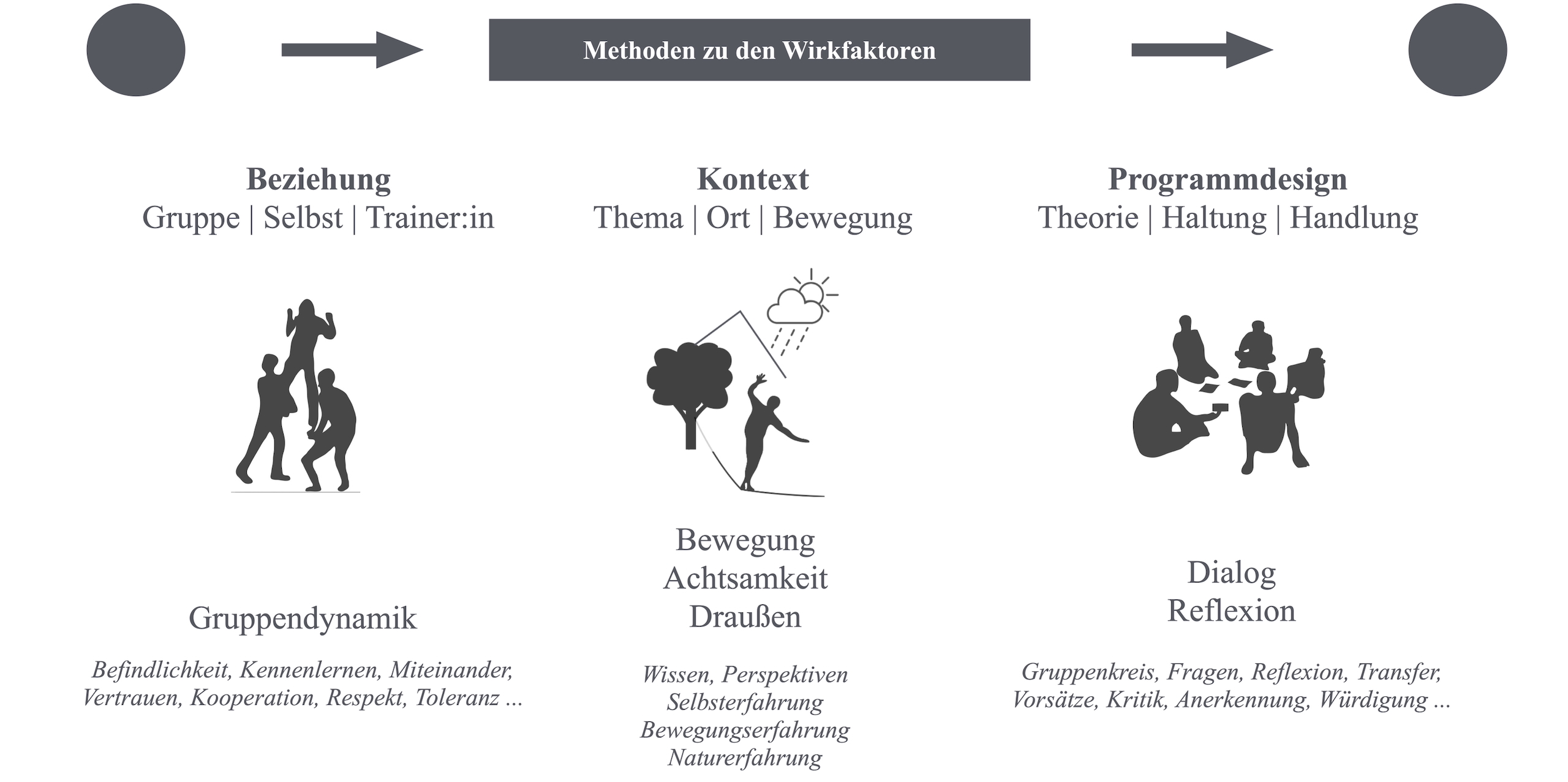 - Beziehung: Gruppe, Einzelperson, Trainer:in & Natur