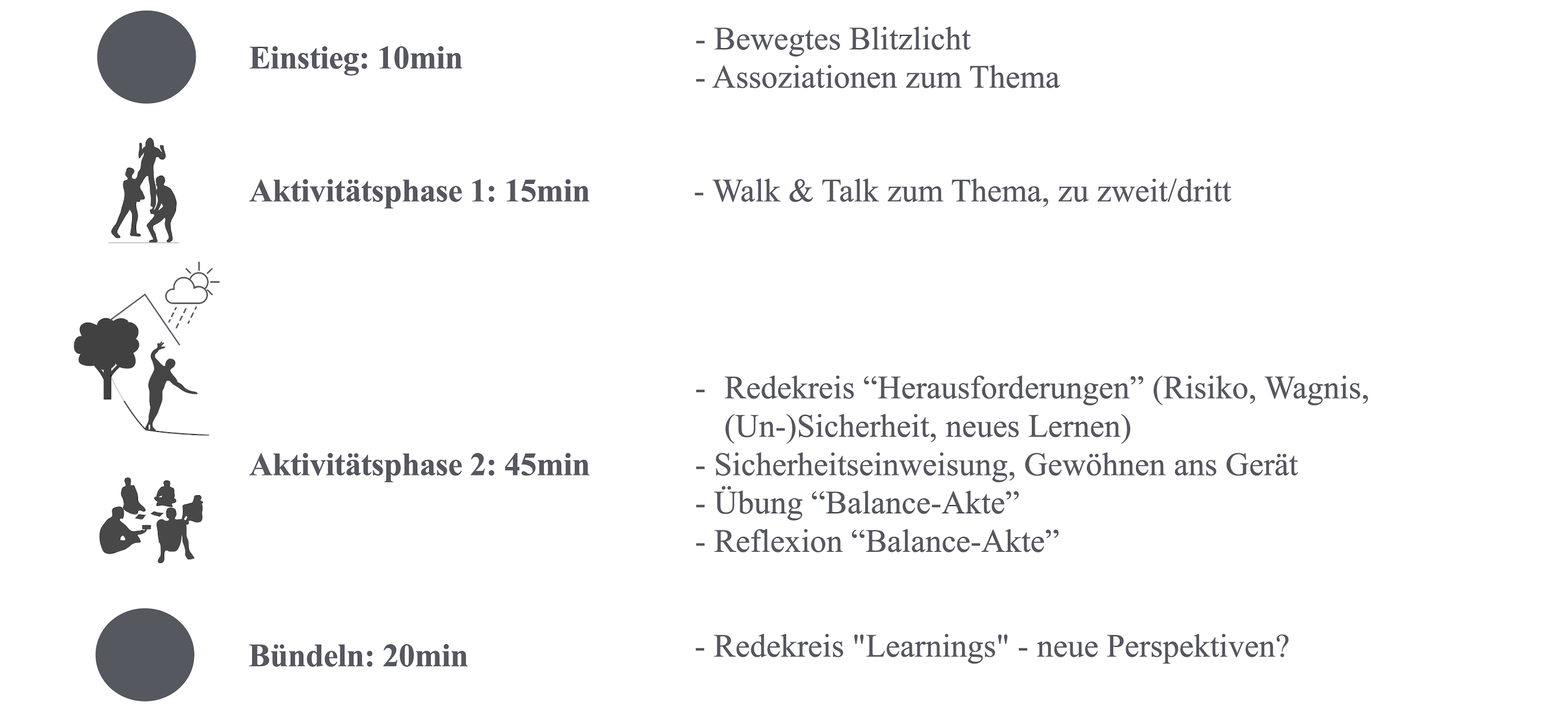 Abbildung 6 Beispiel zur Strukturierung der handlungsorientierten Bewegungseinheit „Etwas Neues wagen“ nach dem Wellenmodell von Hildmann (2017).